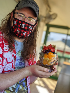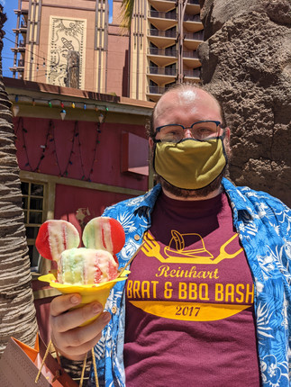 Mike and I ate at the Ala Moana food court. We found out that Hawaii had rules in place that anywhere you ate you had to fill out a short contact tracing form. Mike had Senor Pepes and I had Ramen Bario. Ramen is always amazing to me, but this one stuck out because it had CORN in it. Maybe this is normal but I love corn and combined with ramen? Pure Bliss.
