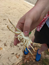 The Bus then dropped us off at Kualoa Ranch, right at the beach across the road. Before we went to check in, I took the opportunity to explore the beach. We found a small crab to take home and a pufferfish that had moved on to the spirit world. I wanted to take him too, but figured it wasn’t the best idea. This beach also provided a view of the popular “Chinaman’s Hat”.