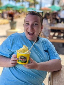 We got a hold of the famous Mickey shaped shaved ice. What a treat! We were able to pick three flavors for the ice, and I always add the cream (if you’re ever at EPCOT, try the Kakigōri from the Japan pavilion)